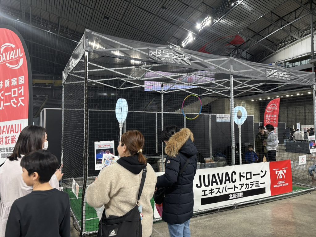 当社は一般社団法人 北海道社会基盤開発協会様・北海道ドローン協会様と連携し展示ブース・ドローサッカー体験ブースを出展いたしました。